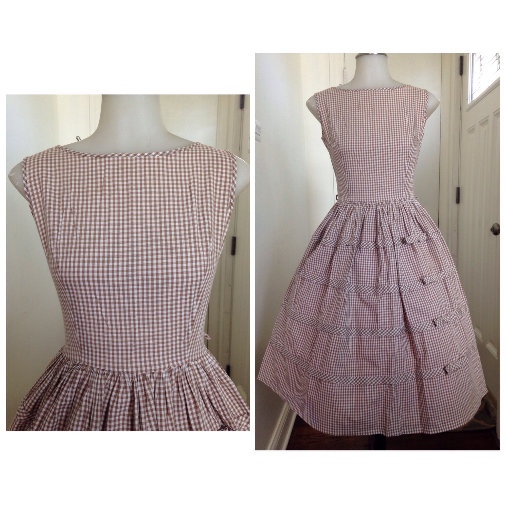 Gorgeous 1950's handmade dress Metal zipper down the back Fabric feels like cotton Belt loops Bust 34' Waist 26' Hips free
